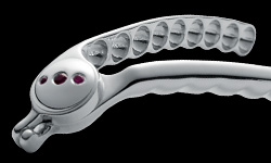 Silber und Gold sind heute die bevorzugten Materialien für diese anspruchsvollen Metallarbeiten. Als besonders reizvoll hat sich das Thema ‚Schmuck in Funktion’ erwiesen. Herr Brück leistet hier seit einigen Jahren Entwicklungsarbeit. Dabei entstehen ganz außergewöhnliche Schmuckkreationen.